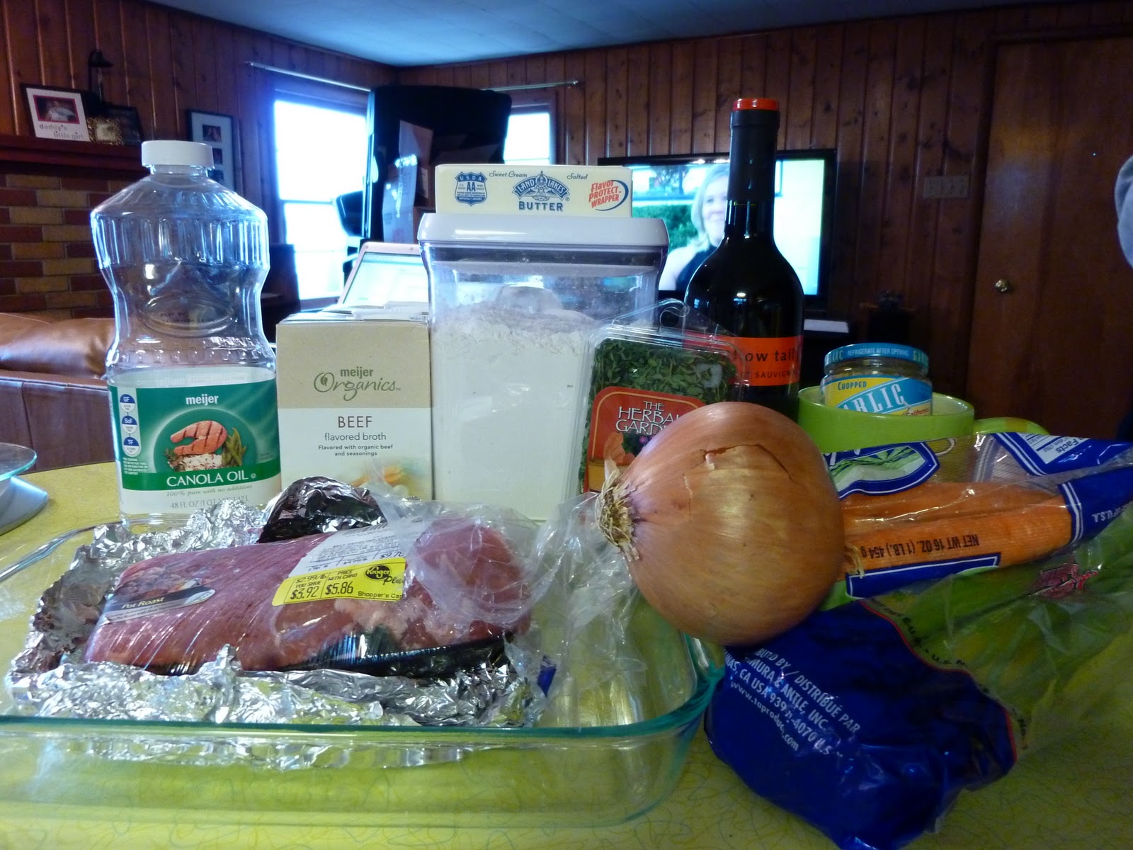 Sounds like a good choice for dinner, right? There are a few different recipes for the Liberty Tree Pot Roast floating around on the web and in the Disney cookbooks… and I chose to follow the New England Pot Roast recipe in the Cooking with Mickey and the Disney Chefs because I only had about 2 1/2 pounds of meat (some recipes called for 6 pounds). I did tweak the recipe a bit, but I will explain that as I go.