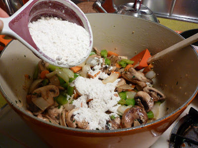 Saute until the veggies are tender and then stir in one cup of flour.